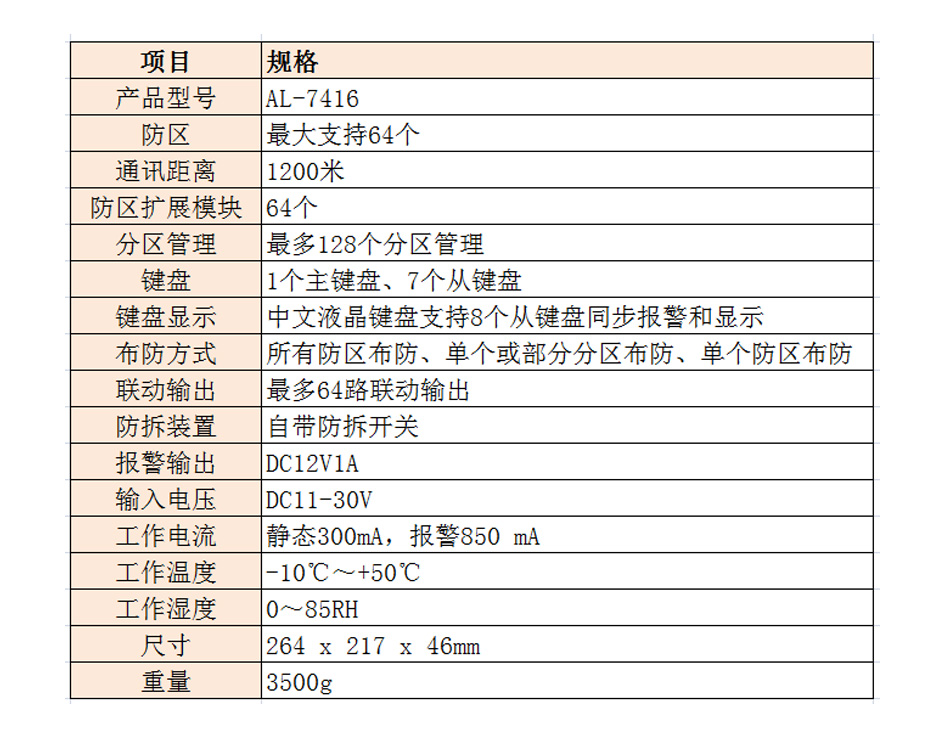 - 多达74组密码。包括:主密码、挟持码、8组用户密码,64组防区密码 。